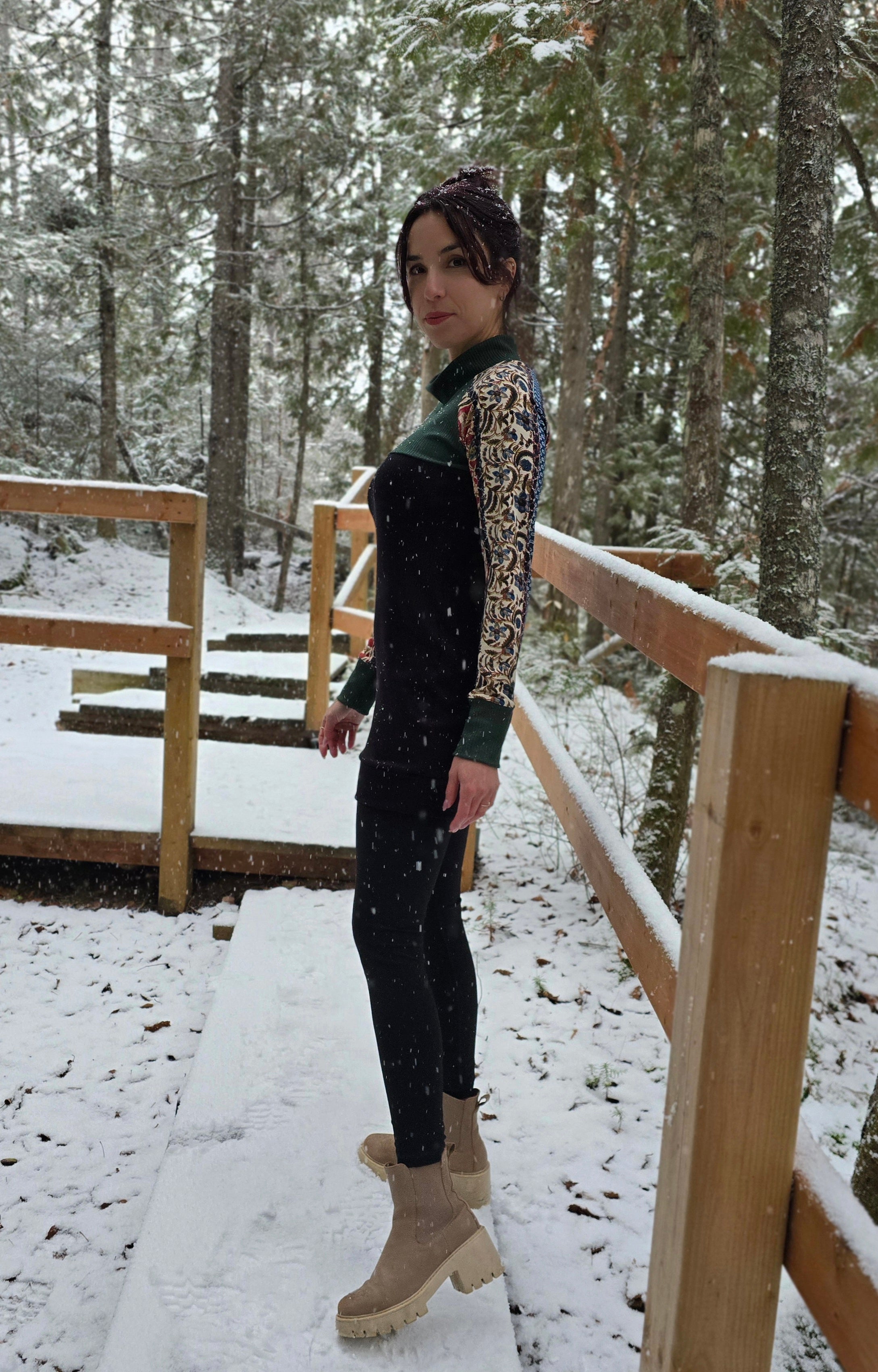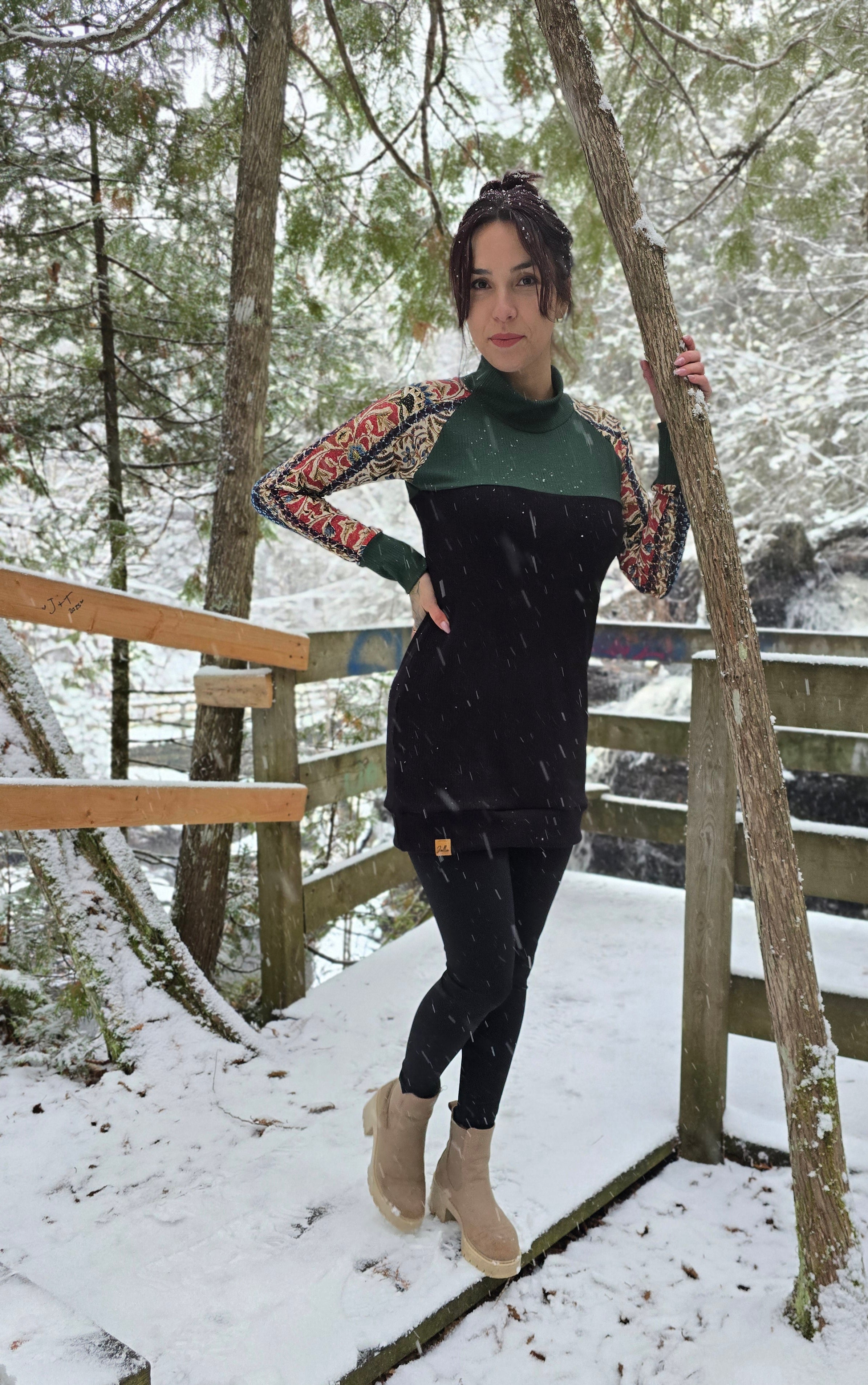 Tissus très souples et extensibles, cette tunique est composée de polyester/spandex à poids moyen.