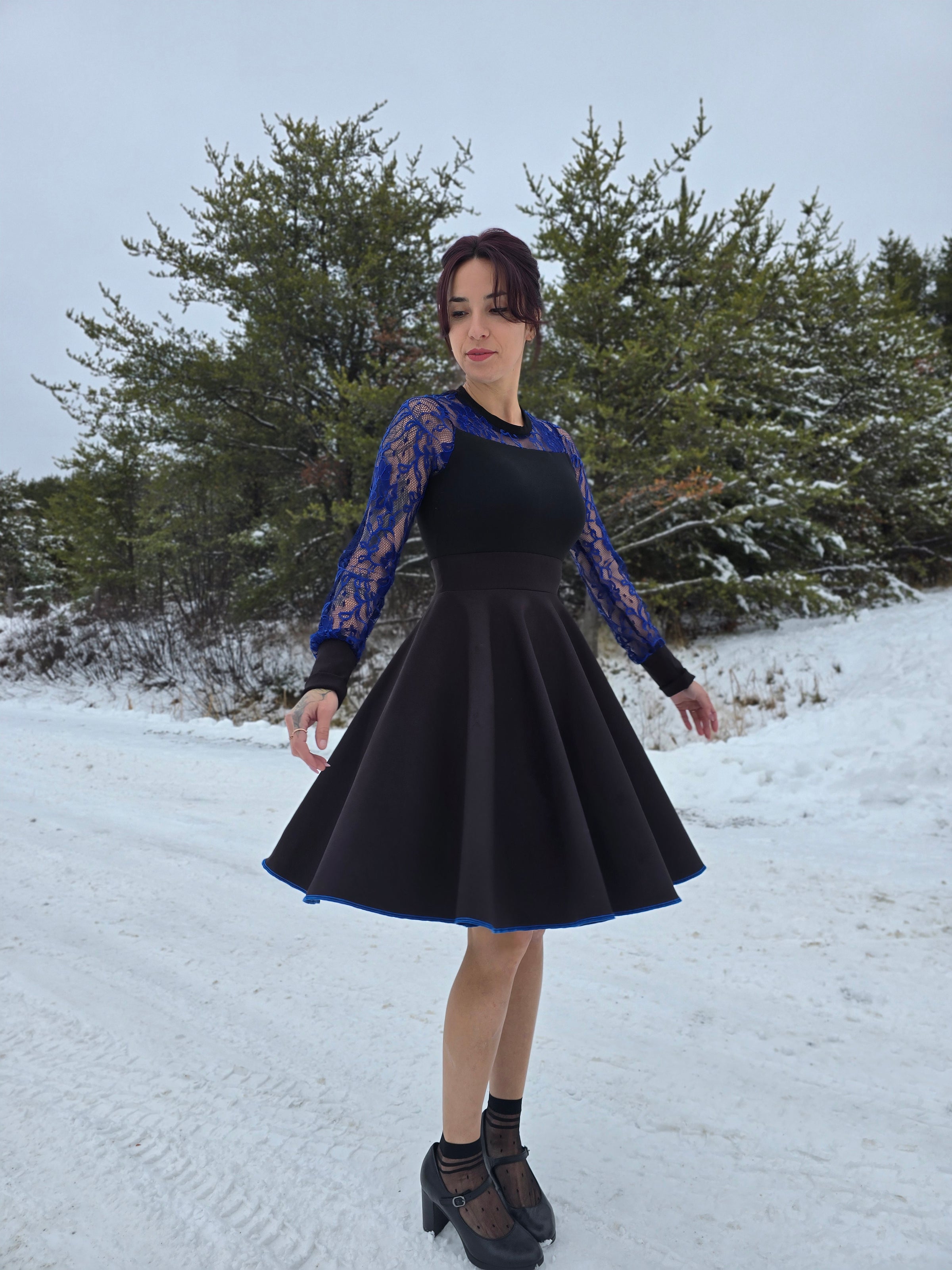 Cette robe est composé d'un tissu fait de rayonne/polyester/spandex qui à un merveilleux drapé, le tissu est de poids moyen et est extensible.
